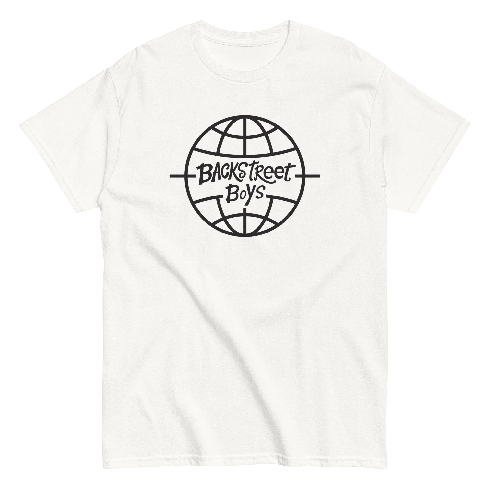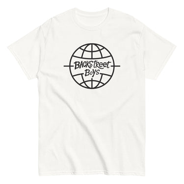 100% cotton unisex classic white tee featuring Backstreet Boys Global logo.